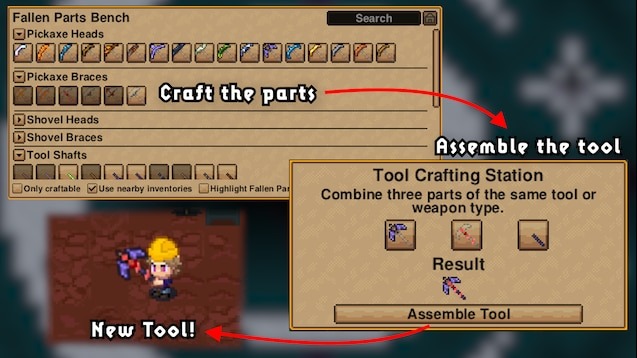 チェスト内のアイテムを素早く検索できるようになったり、全く新しいバイオームやボスが追加されたり、自分だけのカスタムツールを作成できるようになったりと、プレイの幅が大きく広がるのです。