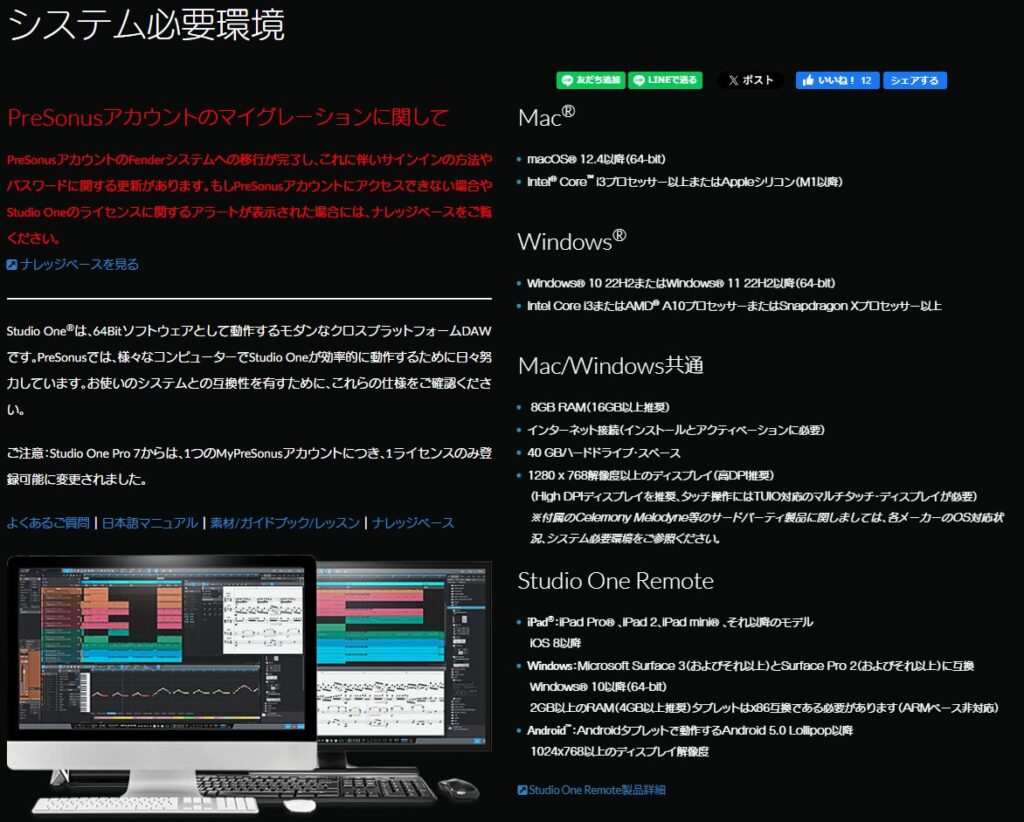 公式に示されたこの最低ラインをクリアするパソコン構成であれば、基礎的な録音作業や編集、軽めのミックスダウン処理は技術的に問題なく実行できるレベルです。