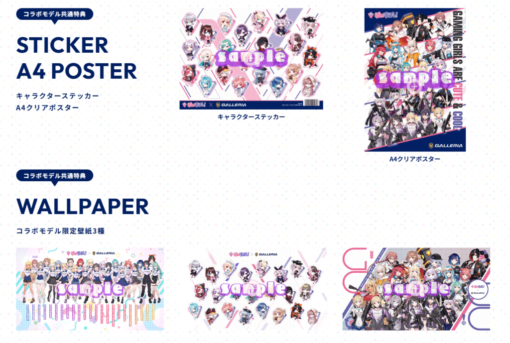 ぶいすぽコラボPCを購入すると、以下のような限定特典が手に入ります。