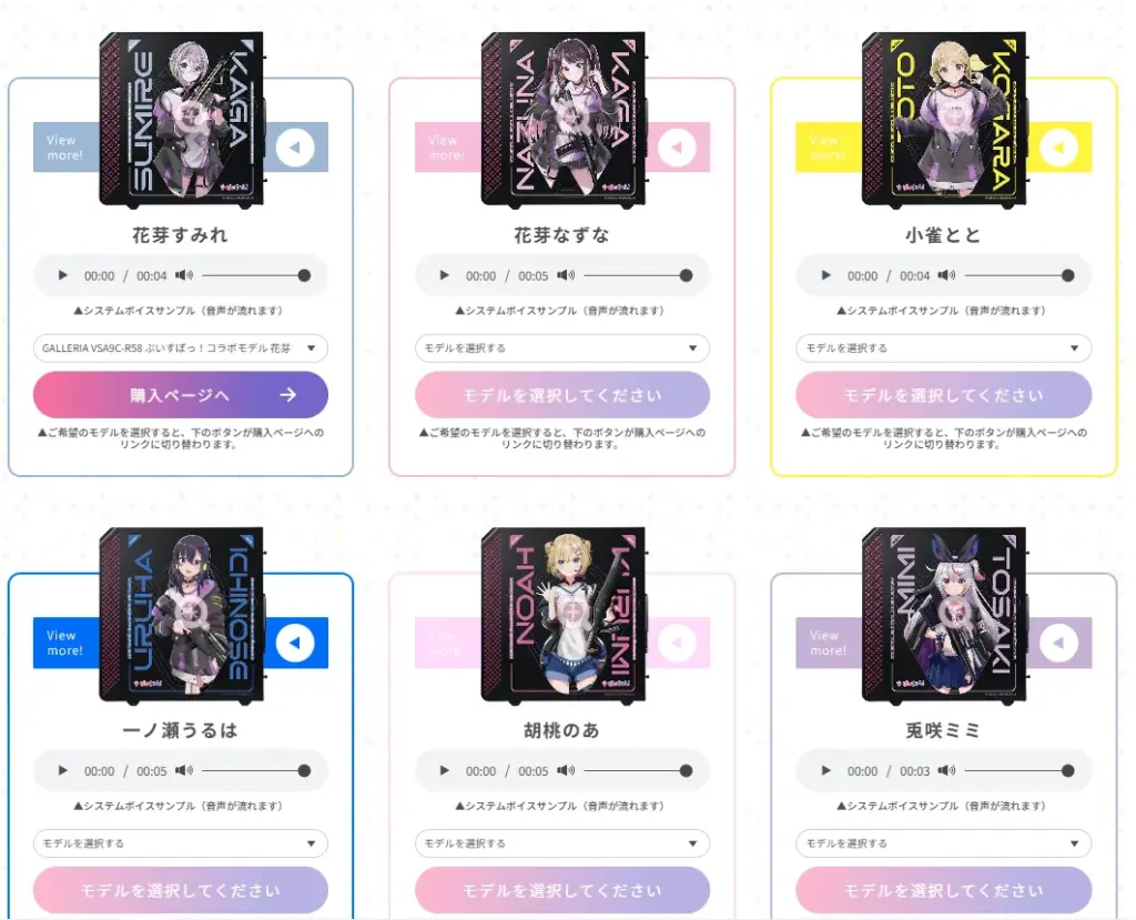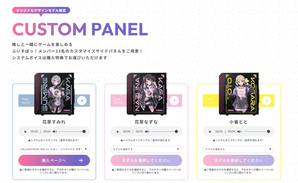 オリジナルデザインモデルを選ぶと、ぶいすぽメンバーが録り下ろしたシステムボイスが付いてきます。