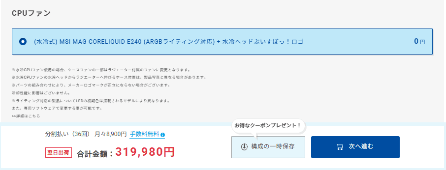 32GBのメモリと水冷式CPUクーラーを標準装備